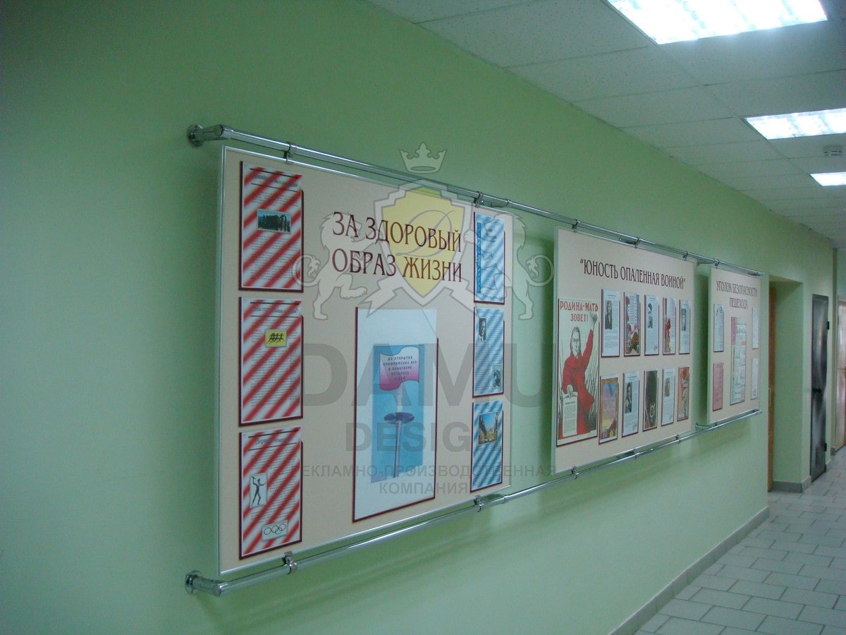 Прослужат не один десяток лет. Мы изготавливаем стенды из качественных материалов, которые не деформируются в процессе эксплуатации.